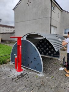The cycle hangar stores 4 bikes securely inside a weatherproof pod. The hangar is accessible for all cyclists and comes fitted with a key lock. The storage unit is suitable for: